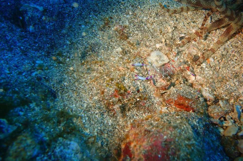 スナイソギンチャクのそばではアカホシカクレエビとオシャレカクレエビが交戦中(^^;)