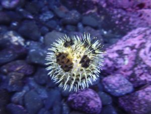 富戸ホールに行くとハリセンボンがウツボのそばでぷっくら~・・・おしりにも顔がある!?