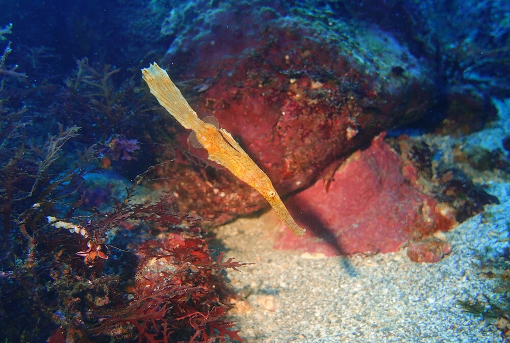 砂地ではヒフキヨウジが2匹、近寄ると首を振っていやいやとします(^^;)