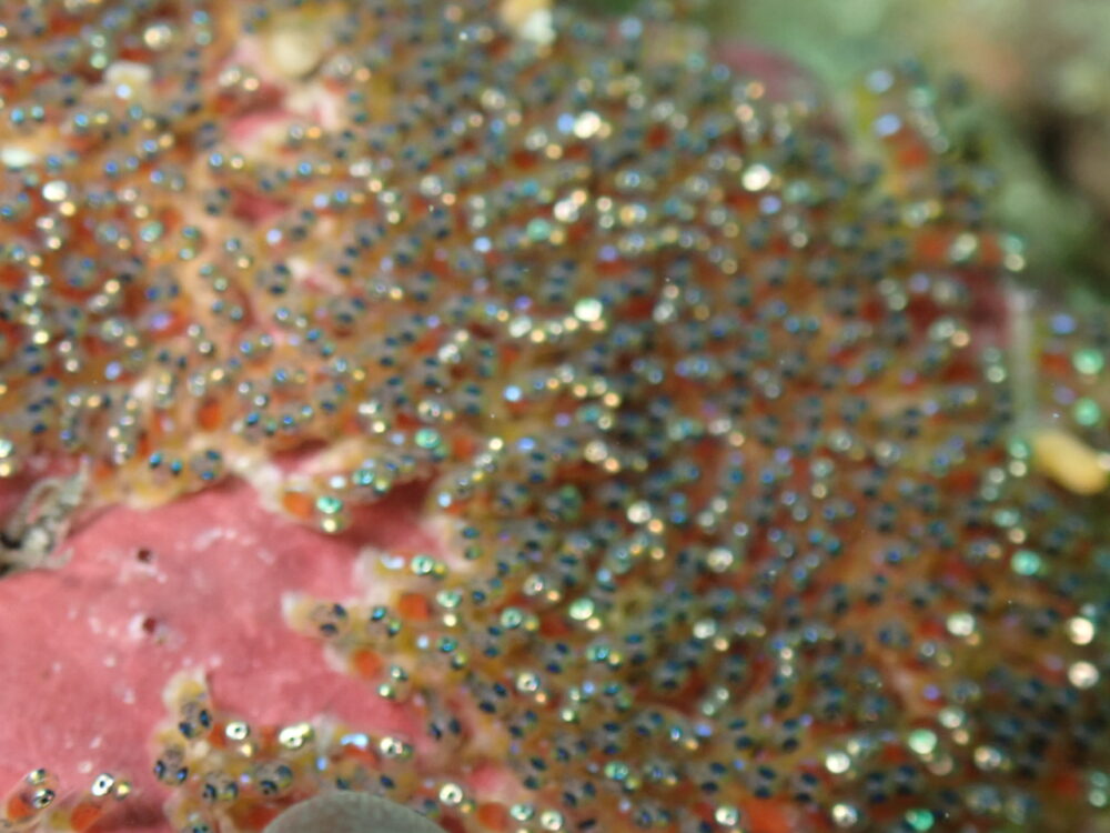 しばらく来なかったら既にクマノミペアの卵は半分以上がハッチアウトしてました笑
