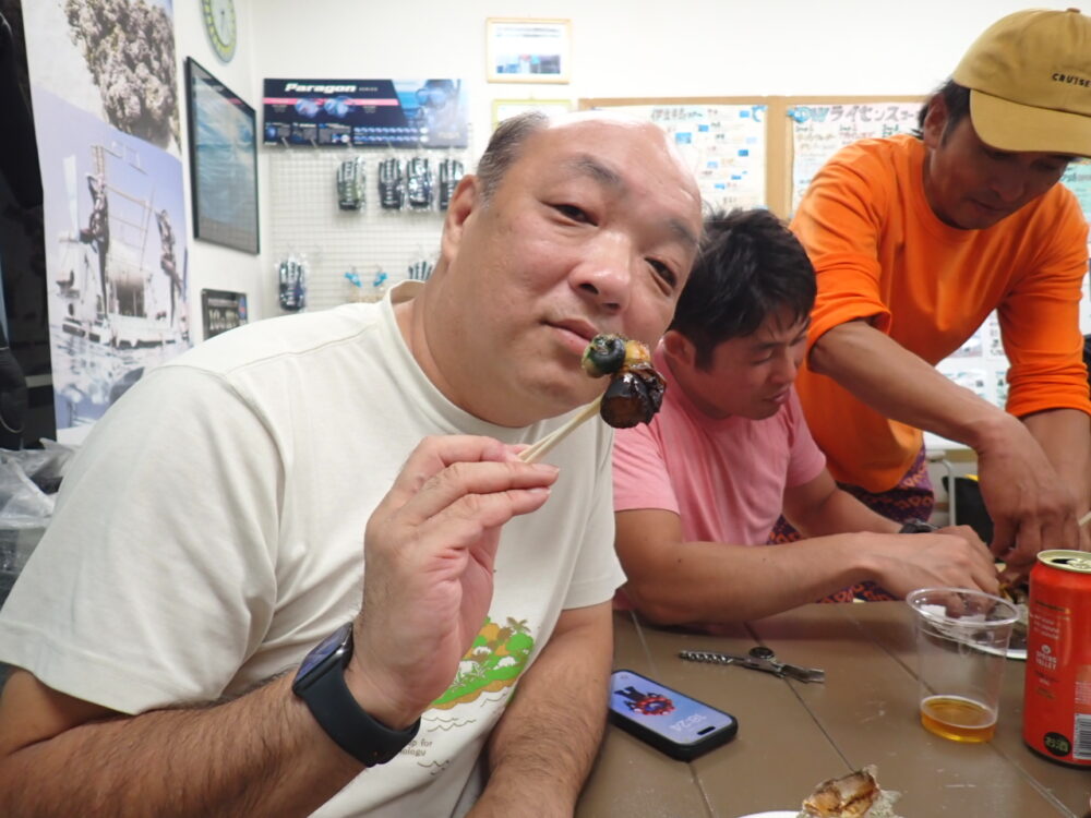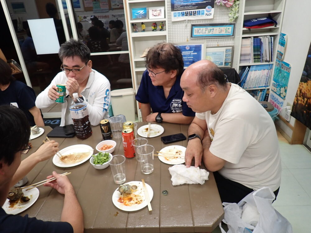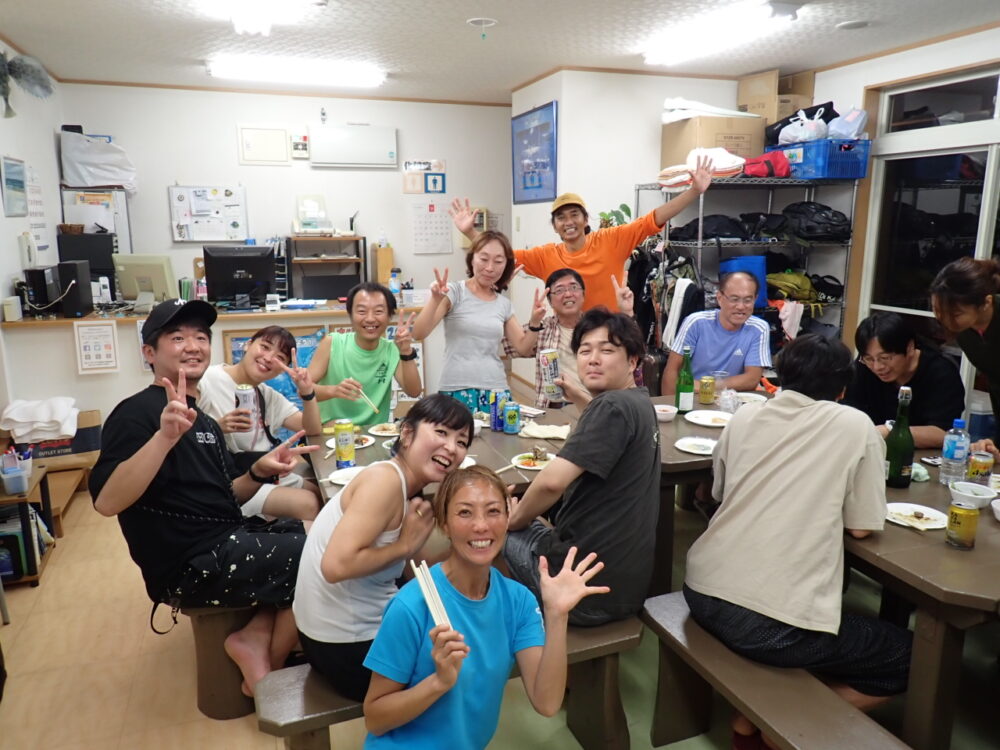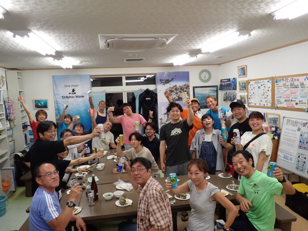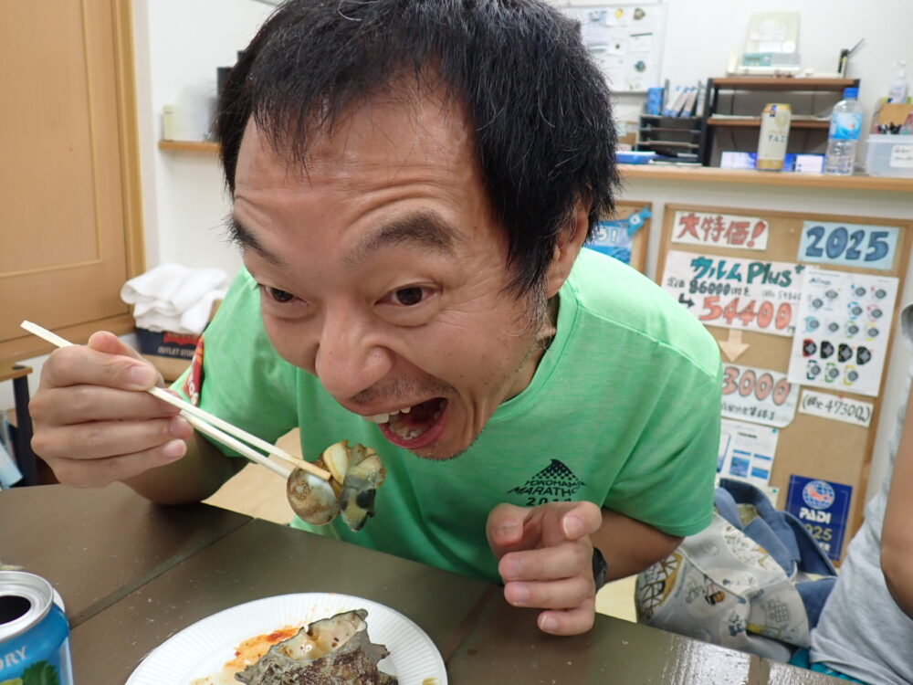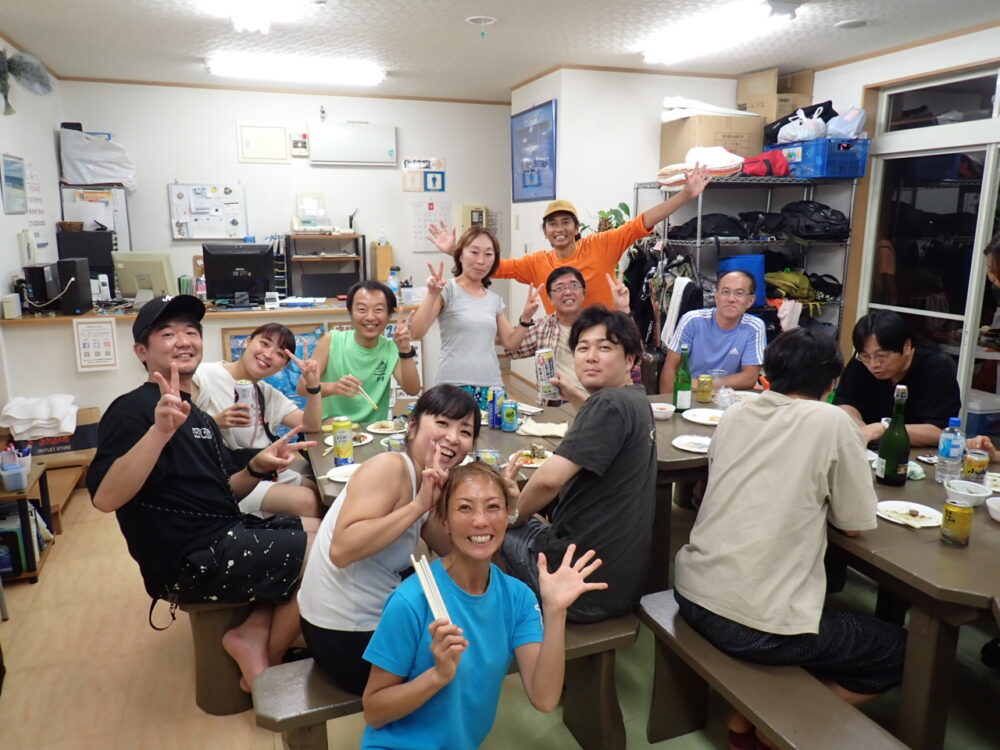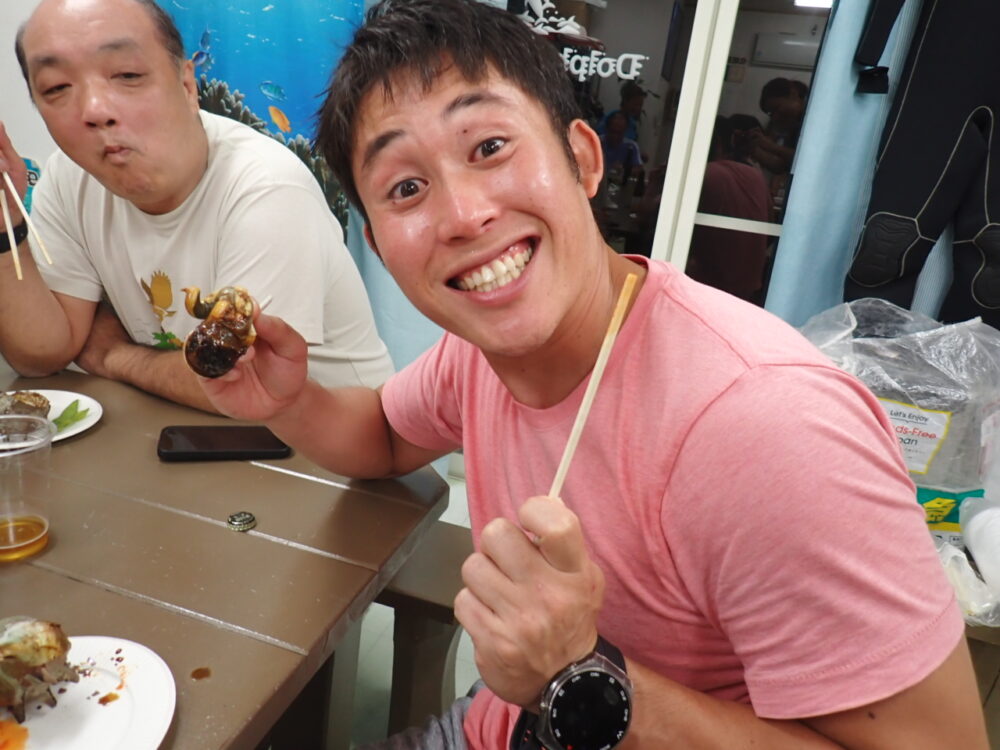 今回も総勢20名の皆様と食べきれない位のサザエのつぼ焼き、ステーキ、海鮮、定番焼きそば等々沢山食べて、沢山笑って、沢山ダイビングのお話をして今回も大盛り上がりのBBQとなりました^^v