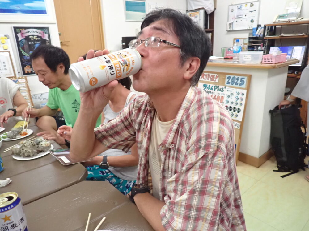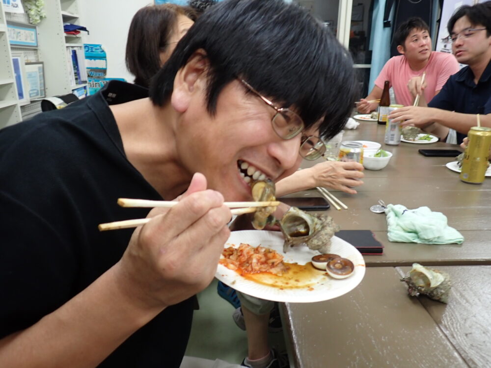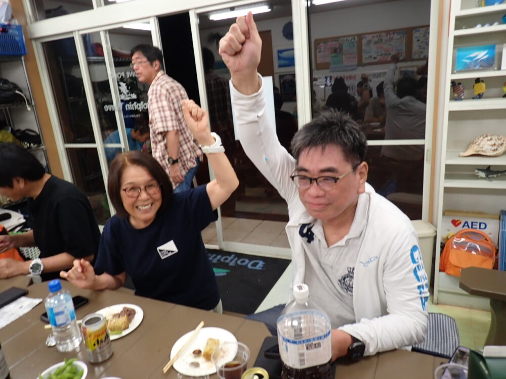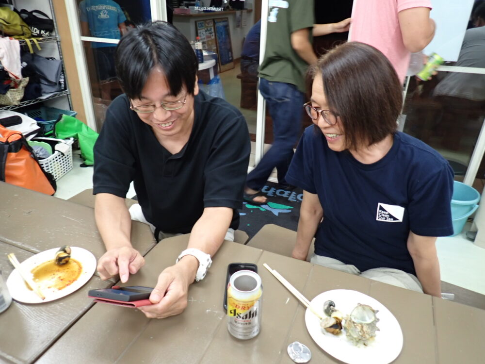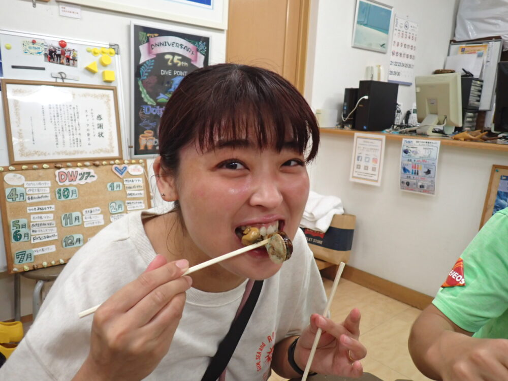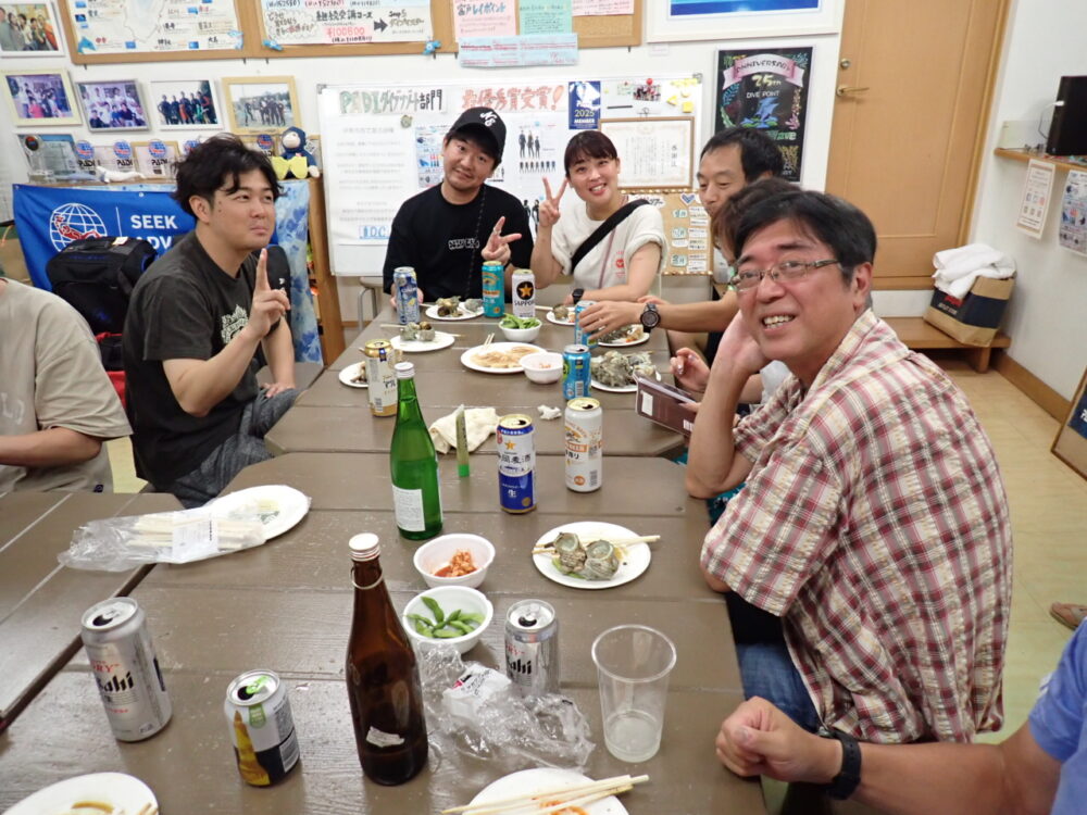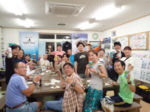 今回も総勢20名の皆様と食べきれない位のサザエのつぼ焼き、ステーキ、海鮮、定番焼きそば等々沢山食べて、沢山笑って、沢山ダイビングのお話をして今回も大盛り上がりのBBQとなりました^^v