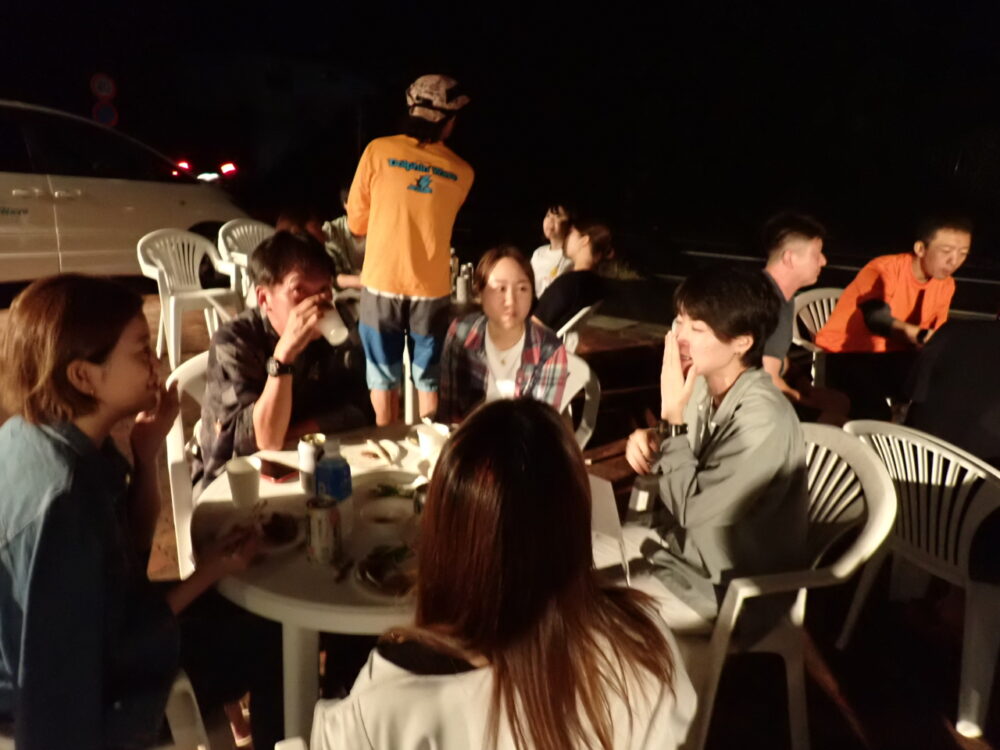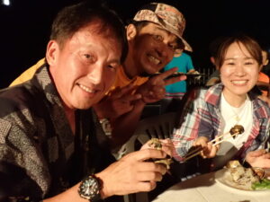 今回で今年の最終回も総勢24名の皆様と食べきれない位のサザエのつぼ焼き、ステーキ、海鮮、定番焼きそば等々沢山食べて、沢山笑って、沢山ダイビングのお話をして大盛り上がりのBBQとなりました^^v