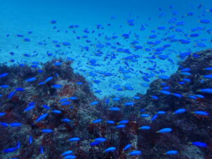 ここ数日で、ソラスズメダイの群れがびっくりするほど増えていて、
