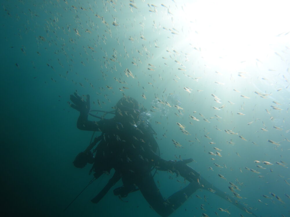 水中は水温22℃ 透視度~10m