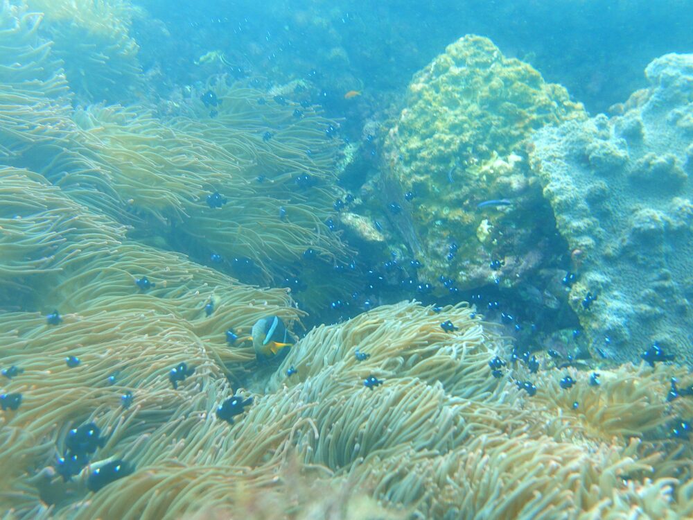 大ききなイソギンチャクにはミツボシクロスズメダイ大集合♪