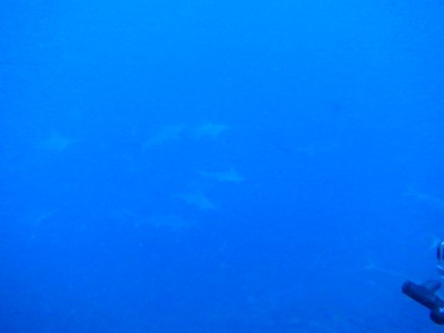 その絶好の水深で、ハンマーヘッド30尾程度の群れに遭遇!
