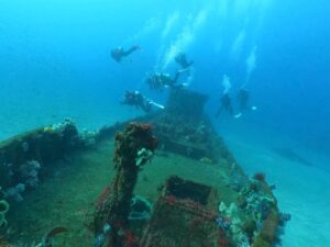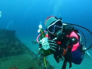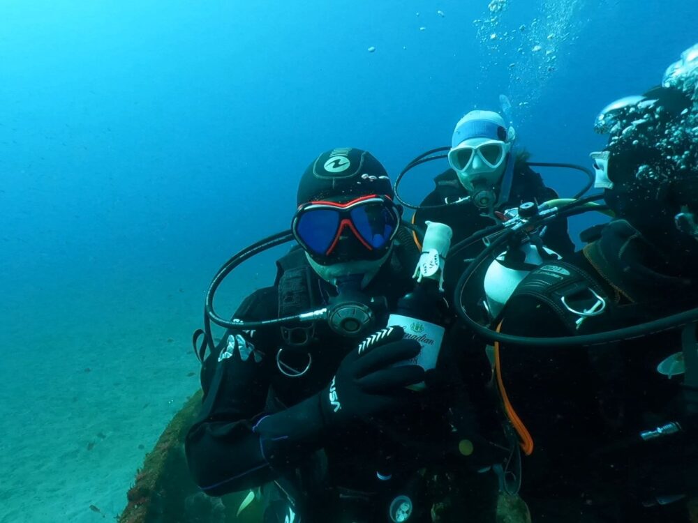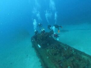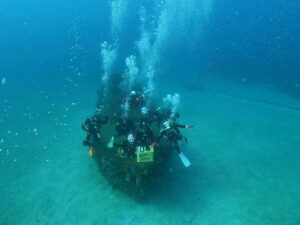 ボートダイブでは「海中熟成酒」製作に『沈船』へ
