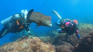 茅の輪潜りやウミウシ探し、大きなネコザメ、コブダイとランデブー♪