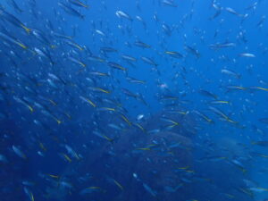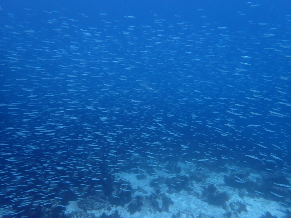 エントリーしてすぐにキビナゴの大群がぐるぐると回り、まさにお祭り状態でした。