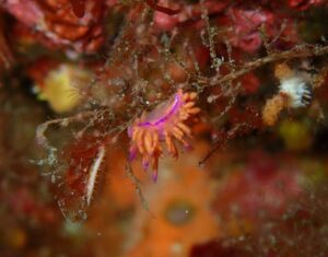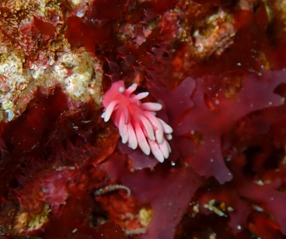 岩場の影に目を向けると、ピンクや白などカラーバリエーション豊富な個体たちが隠れんぼ。
