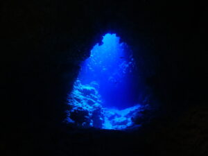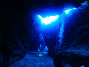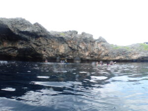 海側からエントリーして内陸の池を目指していけば青と緑のケモクラインが神秘的な通り池